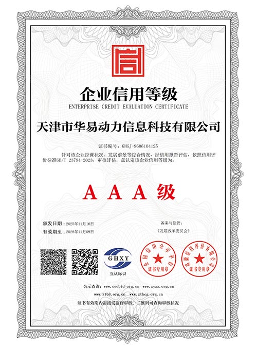 天津市华易动力信息科技有限公司成立于2006年,注册资金500万,拥有专利及著作权共计50余项,天津市软件协会会员单位,国家科技型中小企业及高新技术企业,双软认证企业,并荣获企业3A信用评级荣誉证书。目前公司拥有技术团队及售后服务体系,是一家从事互联网程序开发和技术服务的技术服务型企业。